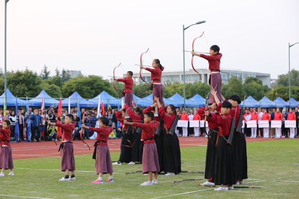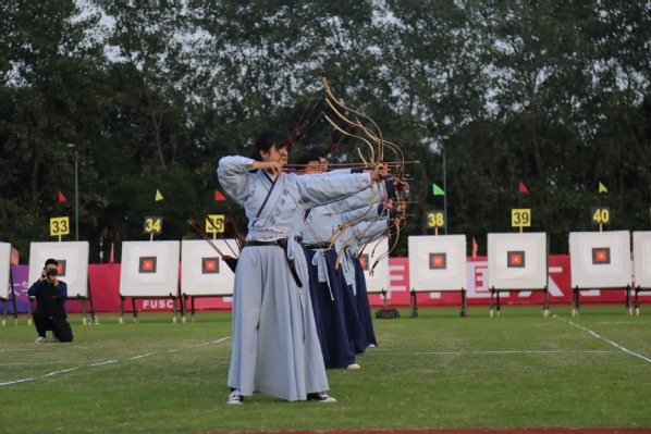 运动员代表李可豪和裁判员代表林琳依次作了郑重宣誓。随后,由中国大学生体育协会专职副主席王刚宣布本次大学生射箭(射艺)锦标赛开幕,现场欢呼声、掌声如潮。在随后举行的文体表演中,上海市青浦区庆华小学学生进行了文射表演,展示了中国传统射箭的礼仪和文化;我校观德射艺队进行了武射表演,展现了射箭的高超技艺、上海市嘉定民办斌心学校献上了表演射韵龙风,为开幕式划上圆满的句号。