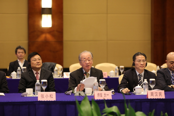 上海对外友好协会会长张小松、日本驻沪领馆总领事片山和之、上海对外经贸大学副校长徐永林、中国社会科学院日本研究所前所长李薇、全国政协外事委员会委员蔡建国、三井住友海上火灾保险(中国)有限公司董事长伊藤幸孝分别致辞。
