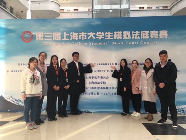 11月18-19日,由上海市教育委员会主办、上海政法学院承办的第三届上海市大学生模拟法庭竞赛在上海政法学院举行。本届大赛汇聚了复旦大学、华东政法大学、上海对外经贸大学等18所高校共襄盛举,我校法学院选派了8名本科同学组成代表队,由法学院桂亚胜和唐红林担任指导老师,2016级国际法研究生黄宗劼担任领队。