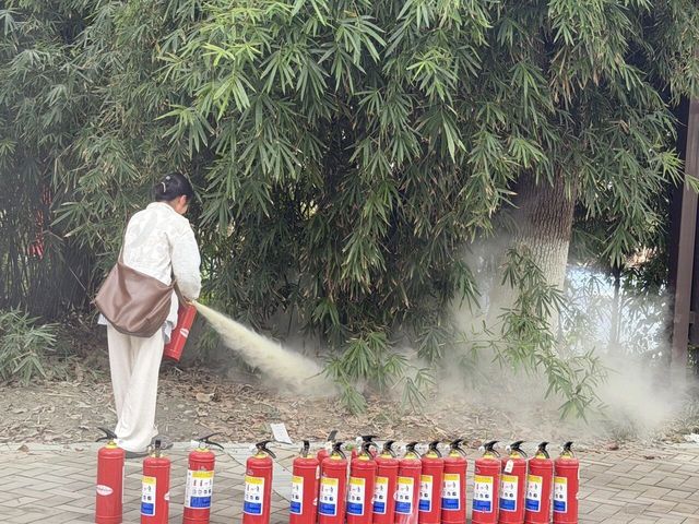 专题讲座结束后,师生移步至社区主干道,参与干粉灭火器实操演练。在专业人员的指导下,同学们认真学习“提、拔、握、压”的操作要领,并逐一进行实操演练,亲身体验灭火过程,有效将理论知识转化为实战能力,提升了应急处置水平。
