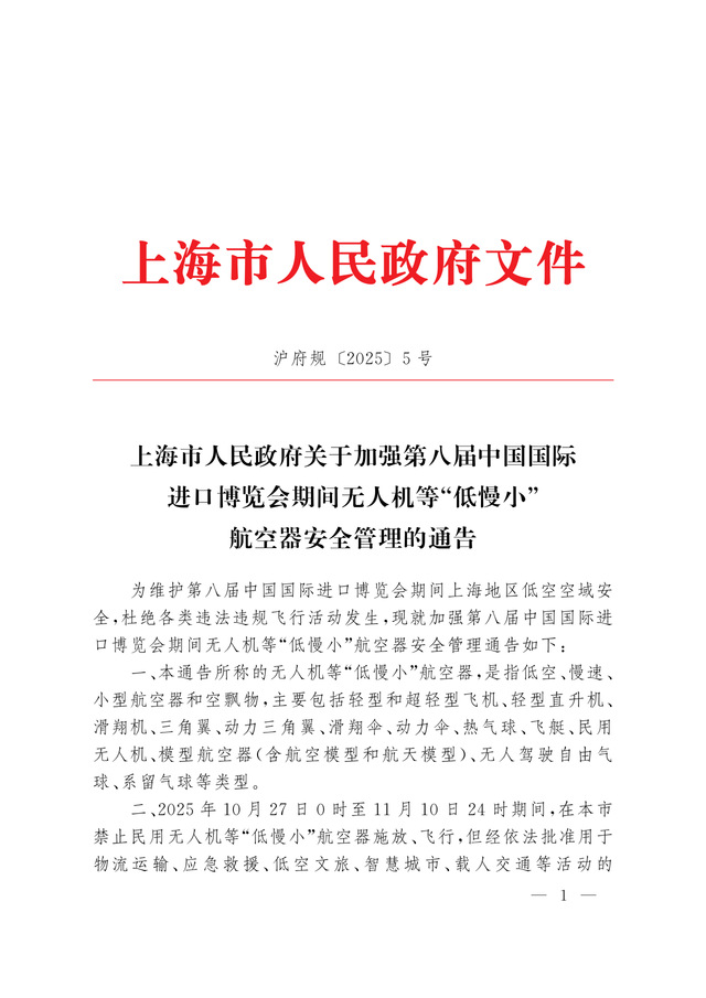 进博会期间,无人机禁飞!