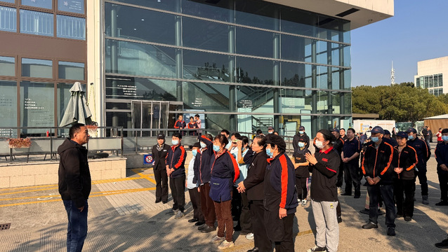 下午2时,全体参演人员于第一食堂南侧集合完毕,保安公司经理蒋建伟就演练的重要意义、疏散路线、注意事项及安全纪律进行了详细说明,并重点强调了全体成员需要严肃对待,确保演练过程安全、有序,随后引导食堂工作人员恢复工作状态。