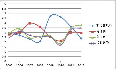 立陶宛 | 2.96 | 3.42 | 2.43 | 2.60 | 2.64 | 1.86 | 3.47 | 3.80 |