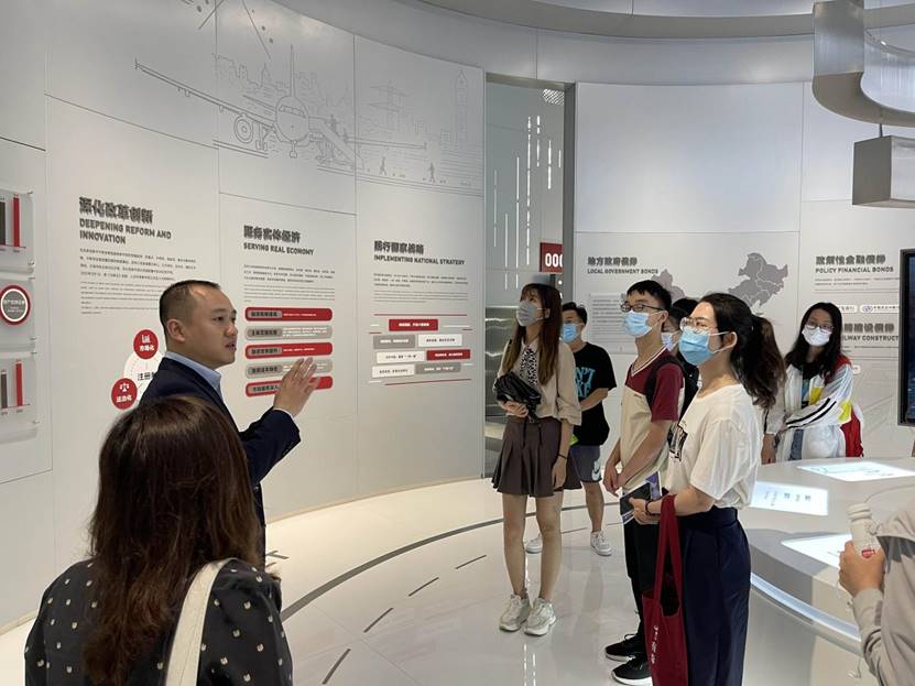 在工作人员的带领下,参访同学和老师一同了解了资本市场发展、全球交易所格局以及中国金融市场体系演变。接着,工作人员带领大家来到上海证券交易所成立30周年主题长廊,资本市场探索前进的步伐一一展现在眼前,不禁让人赞叹改革开放以来,我国资本市场日新月异、翻天覆地的变化。
