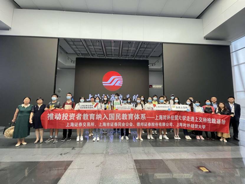 上海对外经贸大学、上海证券交易所、上海市证券同业公会、德邦证券合作课程《证券市场前沿与实务》最后一次课来到了上交所,近距离接触实践,将课堂上了解的知识与实务工作对接。2021年6月24日下午,在上交所投资者服务部的大力支持下,上海对外经贸大学20余名师生及部分授课专家一同走进上海证券交易所投资者教育基地进行参观学习。