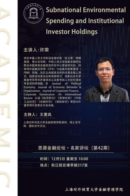 【SUIBE思源金融论坛——名家讲坛第42期】Subnational Environmental Spending and Institutional Investor Holdings