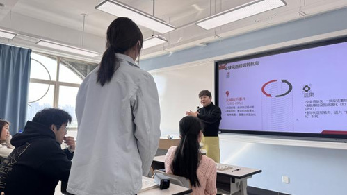 讲座开篇,李雪鹤女士以宏观经济为切入点,系统梳理了经济全球化的发展脉络与当前中国经济的整体态势。为帮助刚接触投资领域的新生更好地理解专业概念,她通俗易懂地解读了“最惠国待遇”“SWIFT”“久期”等名词。讲解过程中,李女士格外注重与学生的互动交流,比如,当谈及人民币全球化进程时,她适时抛出“美元与人民币在全球贸易中的占比分别是多少”的问题,现场同学积极踊跃发言,在问答互动中深化了对知识点的理解。