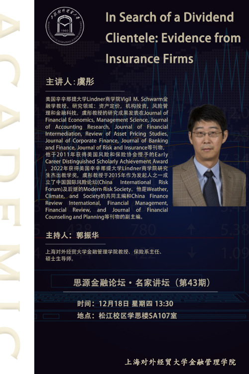 【思源金融 |名家讲坛第43期】虞彤 In Search of a Dividend Clientele: Evidence from Insurance Firms