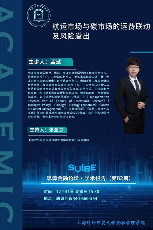 【 SUIBE思源金融论坛——学术报告第82期 】航运市场与碳市场的运费联动及风险溢出