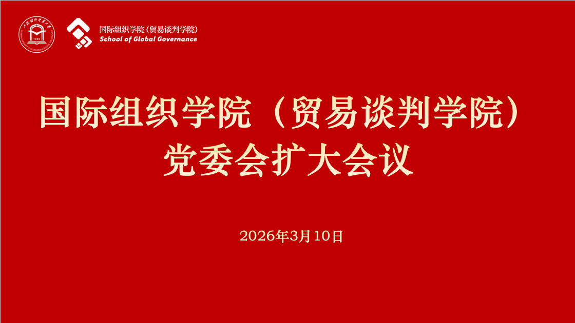 3月10日下午,国际组织学院(贸易谈判学院)召开党委会扩大会议,深入学习贯彻习近平关于树立和践行正确政绩观学习教育的重要讲话和重要指示精神,传达上级和学校党委有关会议精神,动员部署学院学习教育工作。学院党委书记刘素贞传达上级会议精神并作工作部署。学院全体党委班子、党支部书记及党员代表参加会议。会议学习了习近平总书记关于树立和践行正确政绩观的重要论述,传达了学校党委常委会暨党的建设工作领导小组扩大会议精神关于树立和践行正确政绩观的部署要求。会议指出,在全党深入开展树立和践行正确政绩观学习教育,是党中央着眼党和国家事业发展全局作出的重要部署,要深刻认识开展此次学习教育的重大意义,进一步提高政治站位、强化政治担当,切实把思想和行动统一到党中央决策部署上来,将学习教育与学院综合改革落地、“十五五”规划编制实施深度融合、一体推进,以学院改革发展实绩检验学习教育成效,为“十五五”时期学院事业发展开好局、起好步提供坚强保障。会议要求,学校各级党组织要对标对表中央及上级部署要求,全面把握学习教育目标任务,严格落实“立党为公、为民造福、科学决策、真抓实干”的总要求,坚持学查改一体推进,切实做到深学、真查