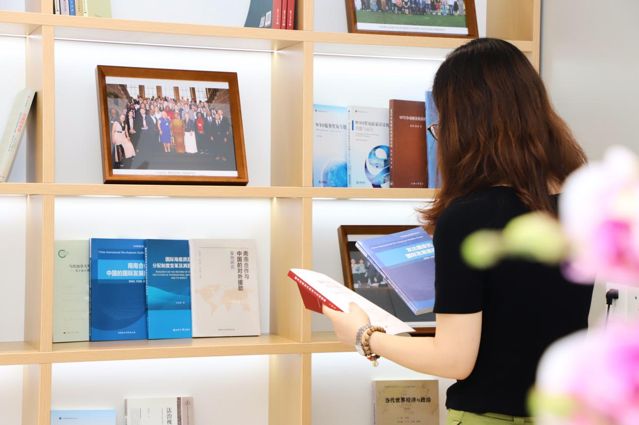 展厅的展架上陈列着瓷器、茶叶、珍珠、丝绸等八件与中国密切相关的全球性商品以及相关研究著作,帮助师生探索国际贸易背后的故事。在研习室的书架上,摆放着学校专家和老师关于全球经贸治理的专著和刊物,以及国际组织人才标准和职业发展相关指南,供师生取阅研读。未来全球胜任力中心将依托主题展厅开展更多活动,辐射全校师生,汇聚推广全校全球胜任力培育的实践和成果,成为师生对话世界、走向世界的重要起点。