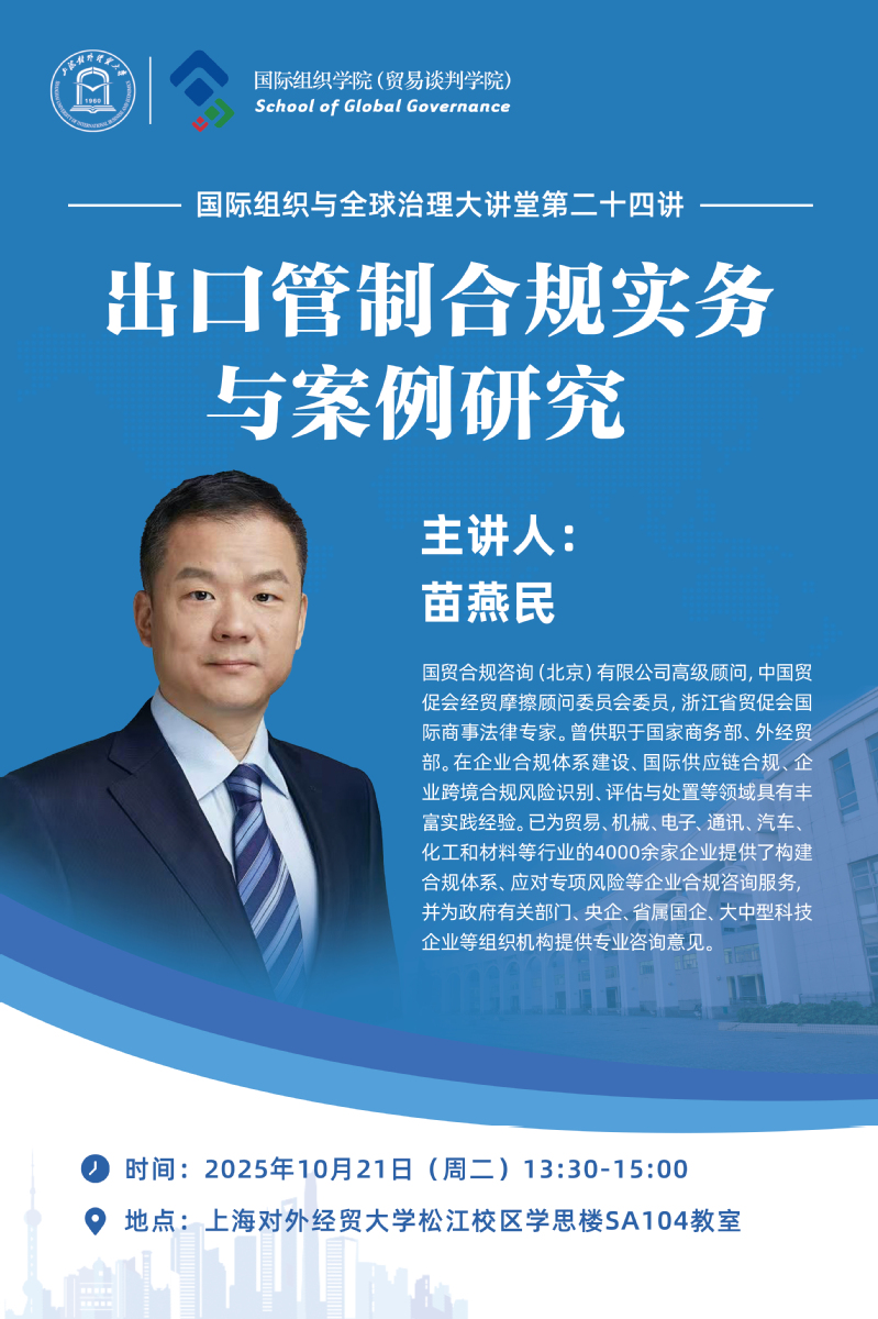 大讲堂预告 | 苗燕民:出口管制合规实务与案例研究