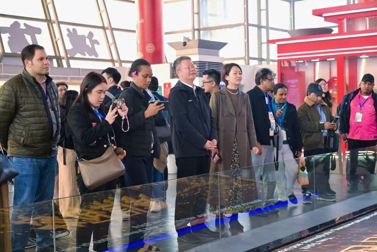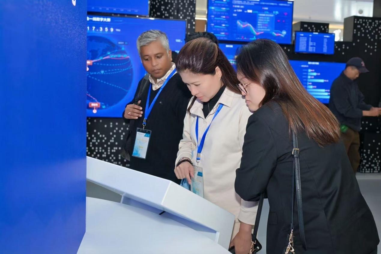 下午,官员们走进全球数贸中心,体验数据贸易创新实践。在商城定制的“世界义乌”商贸大模型演示现场,AI设计软件仅用3分钟生成4套定制方案,高效的数字化服务让不丹工业、商业与就业部副首席贸易官策林先生赞叹不已:“数字化工具打破了中小国家参与全球贸易的技术壁垒,义乌的经验能帮我们快速搭建跨境电商渠道,让更多本土商品走向国际市场。”