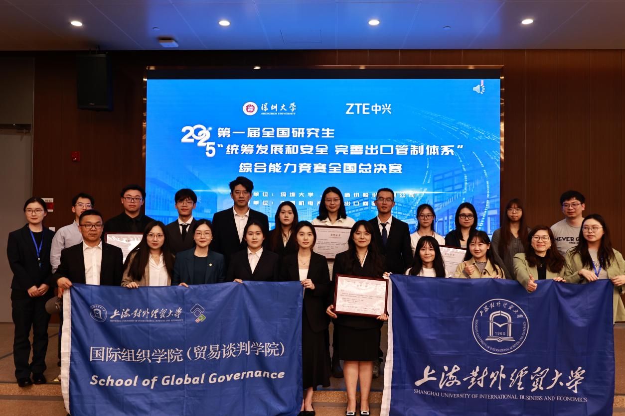 为深入贯彻总体国家安全观,丰富国际商务硕士专业学位(出口管制方向)研究生教学实践活动,强化跨学科、复合型人才培养,着力提升统筹发展和安全、统筹开放和安全实践能力,在上级有关单位指导下,第一届全国研究生“统筹发展和安全 完善出口管制体系”综合能力竞赛决赛于2025年12月21日在深圳大学落下帷幕,上海对外经贸大学研究生团队在决赛中喜获佳绩,3个团队荣获二等奖、1个团队荣获三等奖。