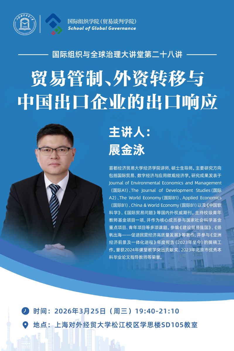 大讲堂预告 | 展金泳:贸易管制、外资转移与中国出口企业的出口响应