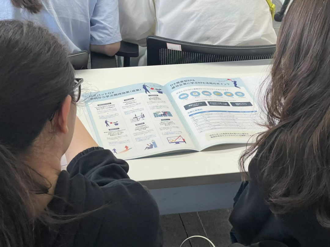 在游览过程中,吴晓磊老师为大家详细介绍了“8+1业务”,“8+1业务”是指用工方案顾问、用工手续流程、用工社会保障、用工酬劳发放、个人所得合规、复杂事件应对、用工风险管控、用工统计分析及移动数智信息。业务办理员通过参考8+1业务为客户提供从入职手续的办理到雇员信息的采集分析等服务,全面精准地为客户提供良好服务。接着吴晓磊老师带领同学们沉浸式体验了在信华的工作日常,同学们被信华充满人文关怀和幸福感的工作环境所感染,对信华的创新能力和发展成就表示由衷的敬佩,并更加明确了自身将来在职业中的定位。