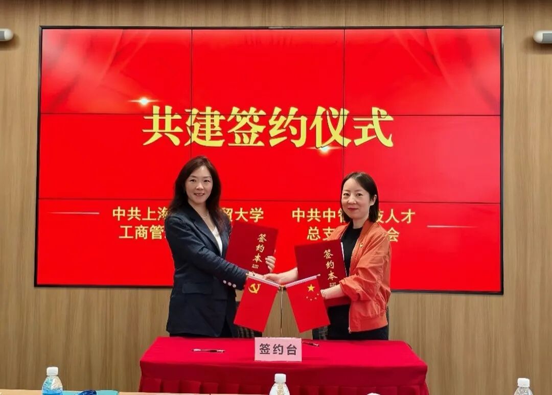 为探索党建引领下的校企协同育人新路径,推进基层党建工作统筹联动,5月16日下午,上海对外经贸大学工商管理学院与上海市科技人才资源中心有限公司在中智大厦举行了共建签约暨授牌仪式。工商管理学院党委副书记张瑞娟、人力资源管理系系主任王莉红、专业教师郝欣宇、辅导员崔延顺、学院学生代表以及中智科技人才公司相关负责人共同出席,本次活动由中智科技人才党总支书记许芹主持。