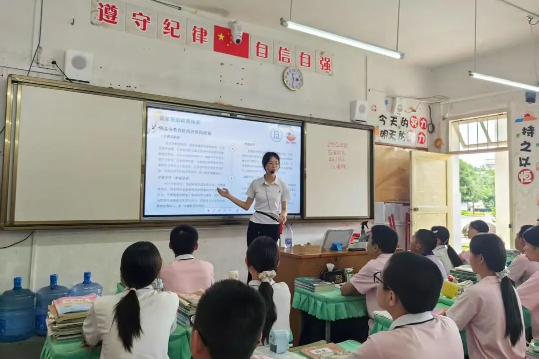 在民族学校,团队成员李盛楠向学生们详细介绍了国家资助政策的内容和申请流程。面对大家关于“什么是国家资助政策”的疑问,耐心细致地逐一解答,让学生们清楚地了解到不同阶段可享受的资助政策。同时,也为家庭经济困难的学生照亮了求知之路。