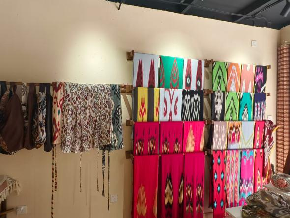 为深入挖掘艾德莱斯丝绸的文化价值,团队围绕“多元场景下的非遗呈现”主题,对亚欧贸易展览会开展实地考察。