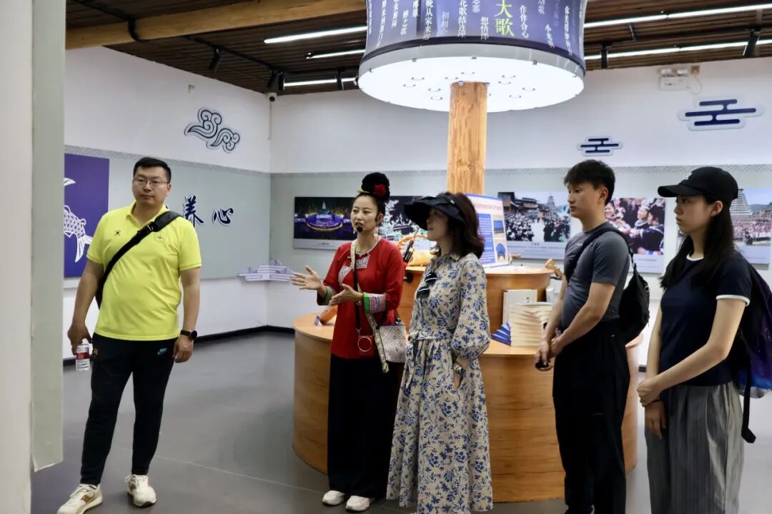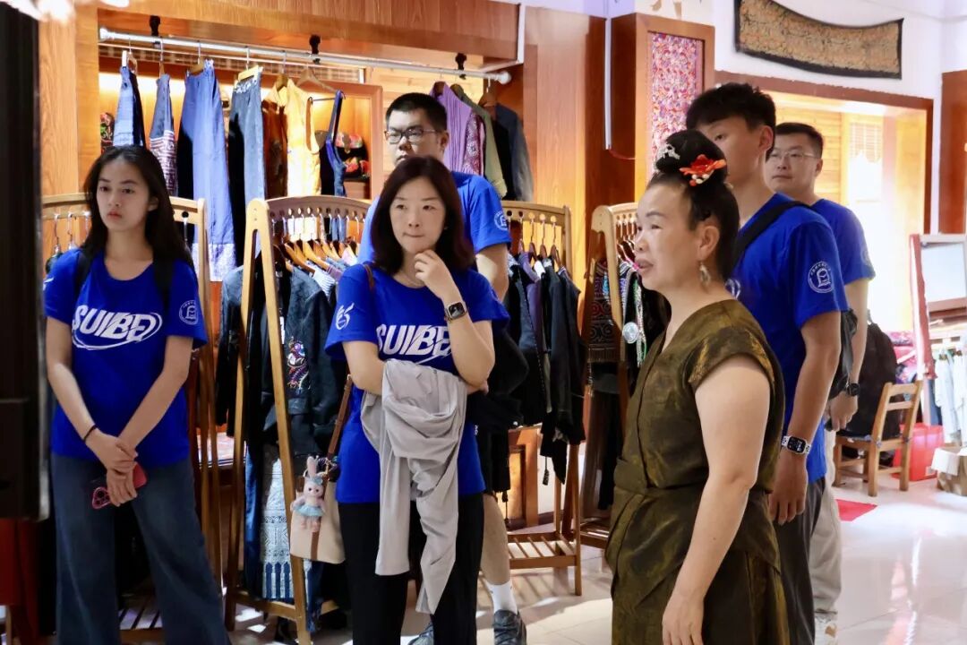 在凯里市委宣传部文产办刘睿主任的带领下,团队师生先后深入当地文化产业园、非遗博物馆、代表性非遗企业、非遗集市及少数民族村寨等地,领略黔东南非遗文化的多元魅力。走访过程中,师生们近距离接触苗族银饰、刺绣、蜡染等传统技艺,通过参观展馆、生产车间和创意工作室,观看并体验当地民俗文化活动,详细了解了非遗文化特色、现代化生产流程、创新设计理念以及市场推广模式等内容。