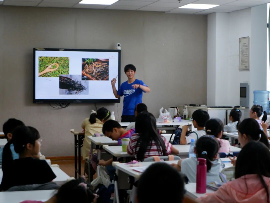 7月8日,团队在上海市徐家汇社区文化活动中心爱心暑托班开设茶文化公益课堂。课堂以纸杯、普通绿茶替代专业器具,通过PPT讲解与互动体验,引导孩子们学习捏杯、奉茶礼仪及茶艺基础。观察中发现,孩子们的积极参与印证了传统文化传承的关键——不在形式复刻,而在以真心焐热历史温度,用真情接续文明脉络。