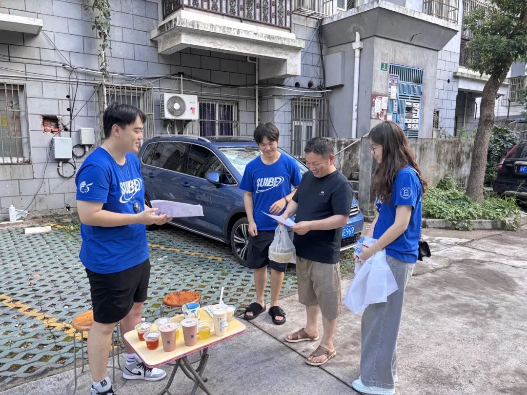 7月11日,团队在文治福邸社区摆开“茶香新韵”主题实践摊,创新传播形式:设置“闻香识茶”趣味环节,借助小程序普及茶知识,以简易茶包降低体验门槛。活动中,青年消费者的参与热情与反馈,为茶文化年轻化传播提供了一手参考。