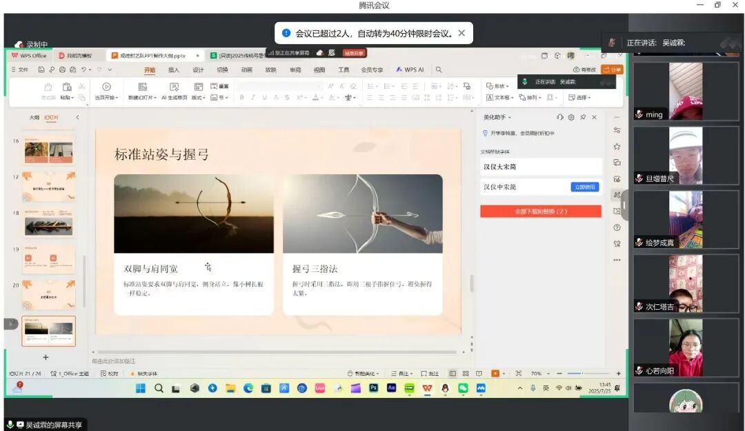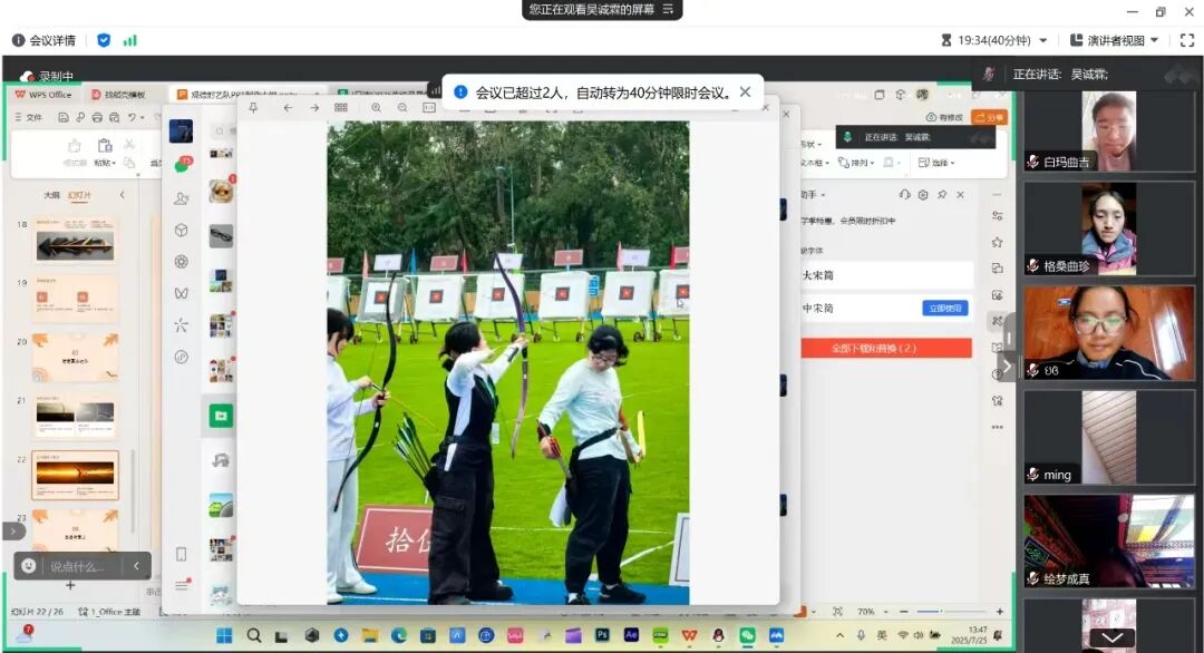 线上家教辅导正在有序进行中,体育板块作为五育的重要内容也正在有序开展。2025年暑期,志愿者们依托线上平台,为西藏定日县第一初级中学和定日县第二初级中学的藏族孩子们带来了以射箭为主题的特色体育课程,让雪域高原的少年们透过屏幕,触摸到传统体育的独特魅力与精神力量。