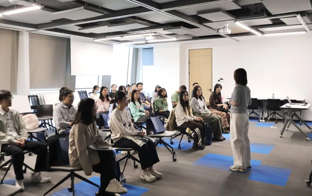 人力资源部负责人Julia从企业招聘视角出发,指出面试中尤为重视候选人的独立思考能力与知识转化能力,即如何将学术积累灵活运用于实际业务场景。她鼓励同学们挖掘自身优势、主动规划职业路径,为现场学生提供了具实操意义的求职指引。