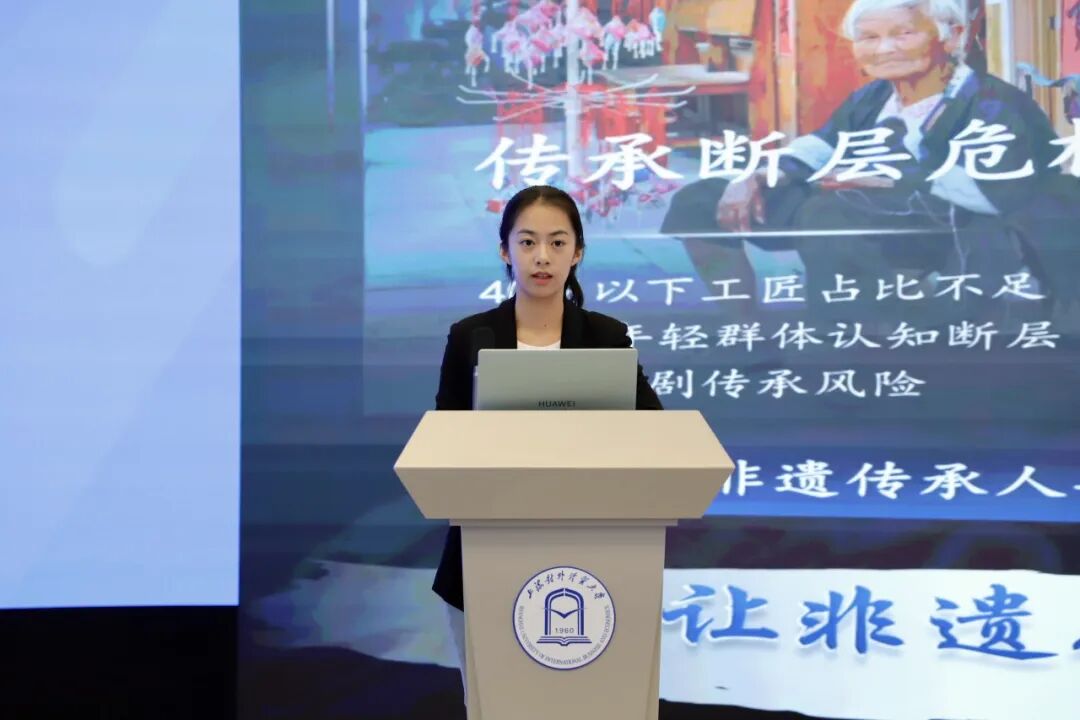 在优秀成果展示环节,特等奖团队“宁心守护、爱不终断”代表刘佳雨、一等奖团队“黔韵新生”代表叶心瑜,分别围绕安宁疗护服务优化与数字化赋能非遗传承两大主题,系统汇报了项目目标、调研过程、核心成果与未来规划。两项成果立足社会需求,展现了我校学子深入一线、服务社会的扎实作风与创新活力。