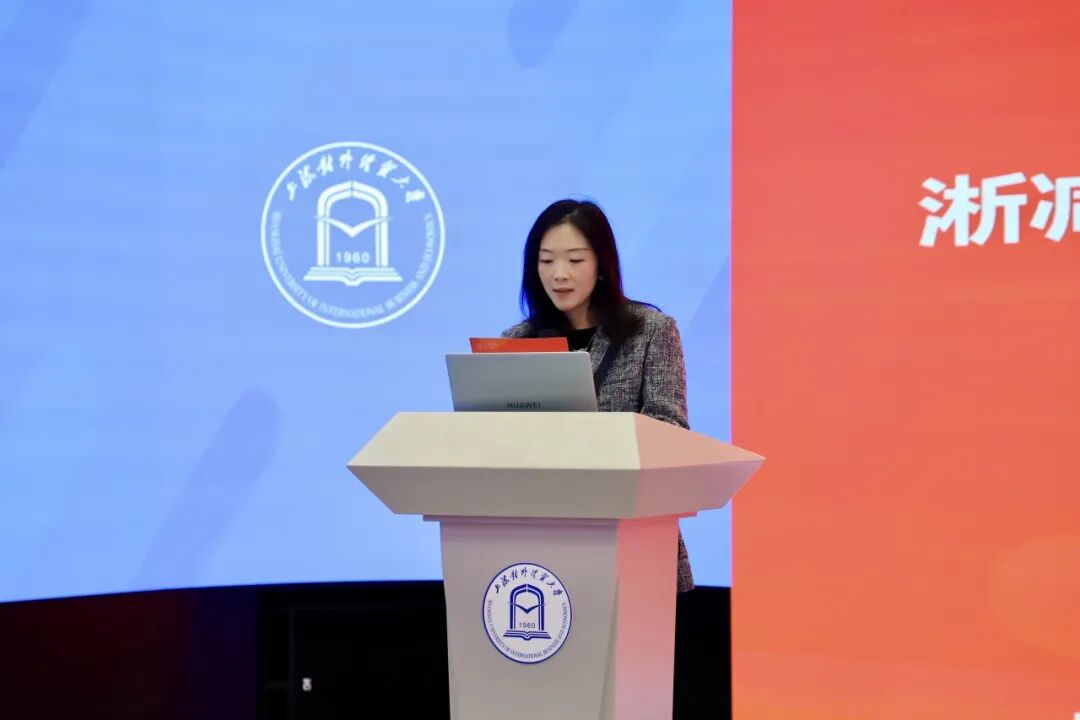 国际商务外语学院教师陈之瑜作为优秀指导教师代表发言。她分享了跨学院协作打破学科壁垒、促进教学相长的实践体会,强调了协同育人在培养学生综合素质方面的重要作用。她呼吁更多师生积极参与跨学科交流与实践项目,共同为品牌强国建设和青年成长贡献力量。