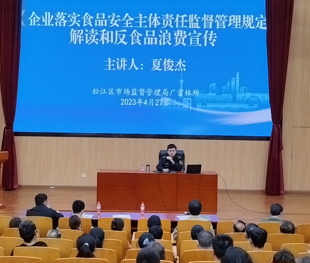 为进一步落实校园食品安全管理责任,提升我校后勤工作人员的食品安全意识和治理能力,保障广大师生的饮食安全和身体健康。4月27日,后勤综合管理处特邀广富林市场监督管理所副所长夏俊杰来校做“食品安全”专题讲座。后勤综合管理处各条线工作人员参加。