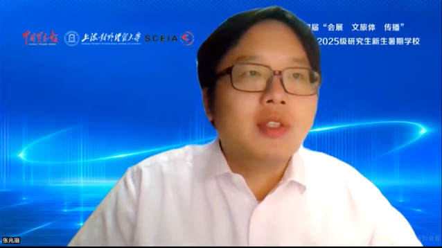 9月2日,由上海对外经贸大学、《中国贸易报》社和上海市会展行业协会联合主办,会展与传播学院、校研究生院、体育健康学院和长三角会展研究院联合承办,五星体育传媒有限公司协同举办的2025第四届“会展·文旅体·传播”融合发展论坛暨2025级研究生新生暑期学校的融合发展论坛板块“专题五:城市发展与文旅体融合”在线顺利举行。华东师范大学经济与管理学部文化与旅游系教授孙晓东,春秋旅游副总经理周卫红担任演讲嘉宾。论坛由上海对外经贸大学会展与传播学院旅游主任张兆琨博士担任主持。