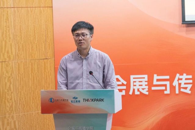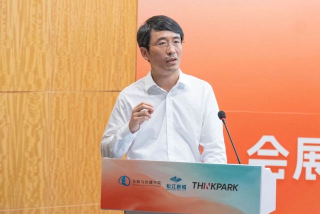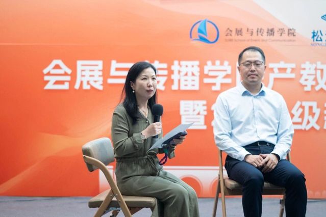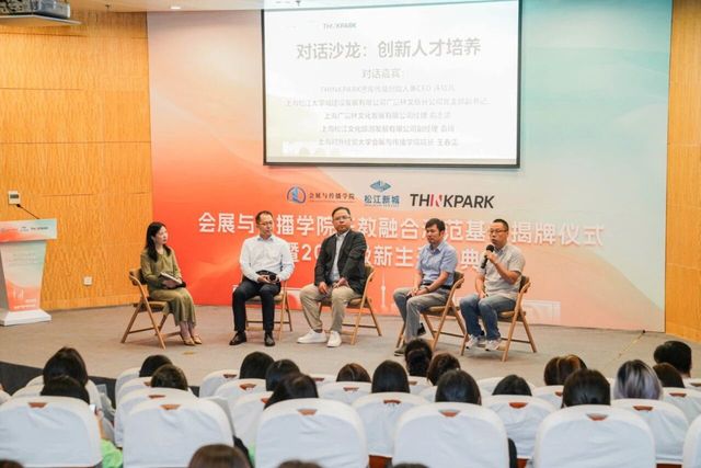 揭牌仪式结束后,学院与共建单位围绕“创新人才培养”话题开展对话沙龙,会展与传播学院副院长叶青青主持。思库传播创始人兼CEO许欣儿、上海广富林文化发展有限公司经理俞志贤、上海松江文化旅游发展有限公司副经理袁琦从文旅、传播等产业行业一线视角,分享数字化与AI冲击下行业应对策略、企业对人才的新需求等思考;王春雷则从产业变革的角度,剖析了高教综合改革、学科融合发展、产教协同育人的任务,并勉励全体新生在大学里制定好规划、多掌握软硬技能。
