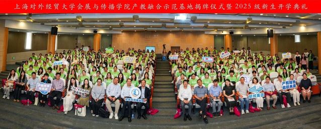2025年10月14日下午,上海对外经贸大学会展与传播学院产教融合示范基地揭牌仪式暨2025级新生开学典礼在松江区泰晤士美术馆(泰晤士小镇内)隆重举行。校党委常委、统战部部长、教务处处长朱建明,学院领导班子成员,上海松江新城投资建设集团有限公司、思库传播集团等共建单位,学院教师代表及2025级全体新生参会,典礼仪式由学院党委副书记邱子桐主持。