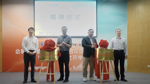 典礼现场,会展与传播学院党委副书记(主持工作)田纪鹏、院长王春雷、上海松江新城投资建设集团有限公司党委副书记、总经理柳卫、思库传播创始人兼CEO许欣儿为“新城集团创新文旅人才班”“思库传播人才班”揭牌,学院产教融合育人新平台进一步推动人才培养与产业行业需求紧密对接。