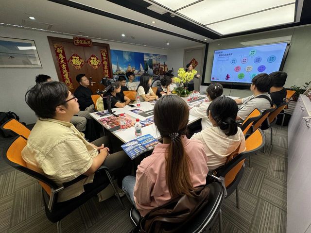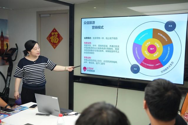 与企业负责人面对面座谈时,同学们深刻感受到众信“旅游+”生态的蓬勃活力:出境游、定制游、移民置业、海外教育、商务会展等板块高度协同,一站式满足多元需求。工作人员自豪地介绍,即便疫情曾让团队规模从千人精炼到160人,办公面积减半,公司仍以高效管理和数字化工具实现“降本不减质”,并快速推出极地游轮、短视频直播、巴黎奥运观赛团等年轻化、高壁垒新品,充分彰显传统旅行社锐意创新的韧性与无限可能。