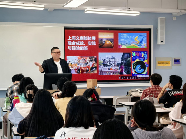 2025年10月30日,会展与传播学院特邀上海文汇报群工民生部主任、主任记者何易,在教学楼A305举办了一场主题为“申城融合密码:文旅商体展的媒体实践与借鉴”的专题讲座。