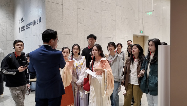 11月1日,我院旅游管理留学生走进上海博物馆东馆,参加“长安荔枝”沉浸式讲解体验活动。在中文叙事与唐风服饰的交织中,大家既以专业视角观察中国沉浸式旅游产品,也以异域文化视角触摸盛唐脉搏。