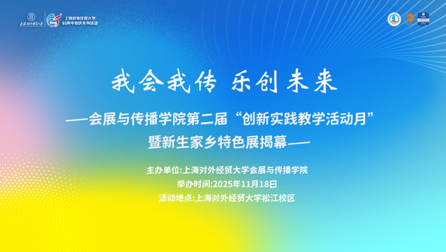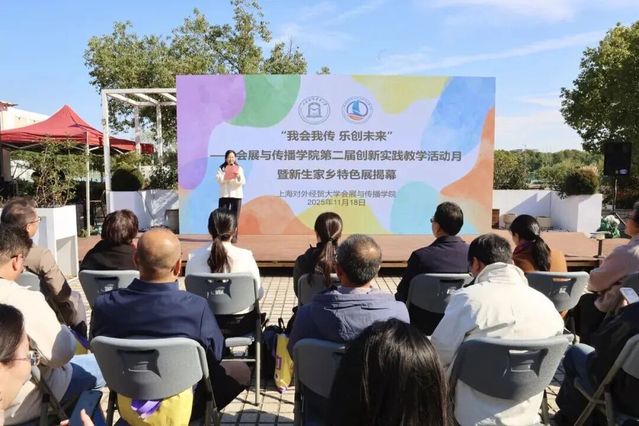 近日,上海对外经贸大学会展与传播学院将松江校区校园“文展书房”变成了一个生动的实践课堂与多彩的文化展场——这里没有传统的课桌与讲义,取而代之的是天南地北的家乡风物、前沿的融媒体设备路演和沉浸式的旅游体验设计——这正是学院第二届创新实践教学活动月暨新生家乡特色展的现场。
