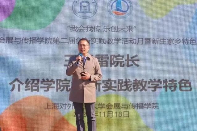 会展与传播学院院长王春雷介绍了学院创新实践的教学特色。他表示,学院以上海数字文旅和会展现代产业为依托,一方面以产教融合整合优质办学资源,成立博华数字会展人才班、松江新城集团创新文旅人才班和思库传播人才班;另一方面以多专业协同锤炼学生复合能力,通过课程融合与真实项目实践,精准对接城市社会经济发展需求。