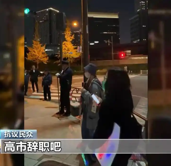 日本民众集会,要求高市早苗下台。图源:央视新闻