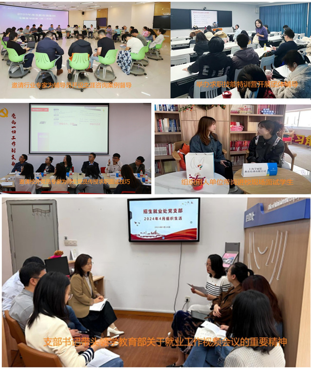 做法:支部创新主题党日形式,紧扣就业业务需求,每月设定“毕业班辅导员培训”“生涯咨询案例督导”等实务主题,邀请行业专家、企业HR 开展专题讲座并组织党员研讨。同时组织党员教师参加上海职规赛课程教学比赛等技能竞赛,以赛促学提升业务能力。