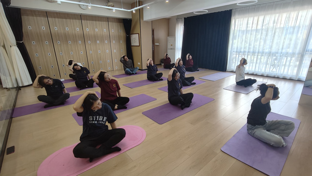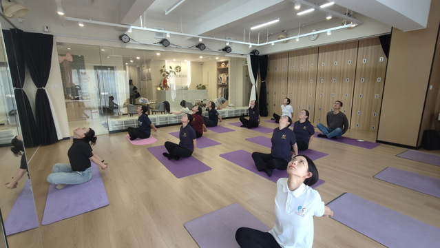 练习过程中,教练不断强调“聆听身体的声音,做到自己的极限即可”,这让所有参与者,无论是瑜伽新手还是已有基础的老师,都能在轻松、无压力的环境下享受运动的乐趣。一小时的专业体验,让大家暂时忘却了工作的繁忙,专注于一呼一吸与身体的对话,有效缓解了长期伏案带来的肌肉紧张与精神疲劳。