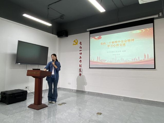 会计系教工党支部书记高翀以“党的二十届四中全会精神解读与教育强国建设思考”为主题开展导学,讲述专题微党课。她系统梳理了党的二十届四中全会精神及“十五五”时期经济社会发展的主要目标和重点任务,并聚焦科技与产业变革对高等教育的时代要求,强调教育强国建设是中华民族的历史使命,高等教育需主动对标,在自主创新、成果转化、交叉学科建设及产教融合等方面持续突破。