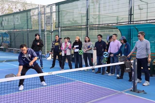 在联学活动的第二环节——匹克球运动中,由体育健康学院李永华带领全体人员前往匹克球场,他先向大家员详细讲解了匹克球运动的特点与规则,使大家对这一新颖的运动项目有了深刻的认识。在随后的匹克球练习和对打活动中,大家积极参与,现场气氛热烈。通过这样的活动,不仅锻炼了身体,更增进了跨部门党员群众之间的沟通与默契。