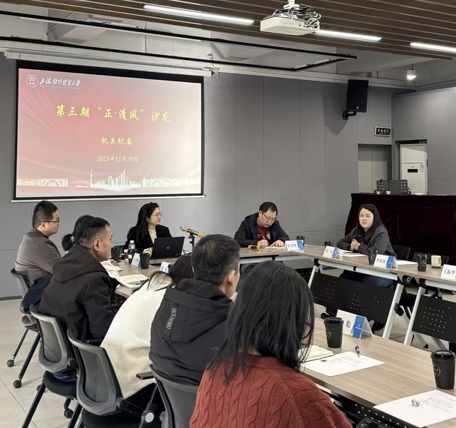 为深入学习贯彻党的二十届四中全会精神,进一步提升机关党支部纪检委员履职能力,推动全面从严治党向纵深发展,2025年11月26日下午,机关纪委在乐群楼302工会活动室举办第三期“正·清风”沙龙活动。机关纪委委员、各党支部纪检委员参加活动。活动由机关党委副书记、纪委书记赵静主持。
