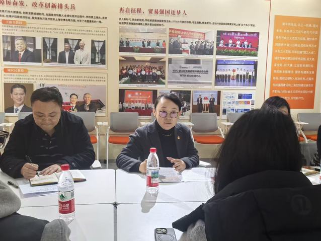 为深入学习贯彻党的二十届四中全会精神,自觉落实教育对外开放重要部署,12月18日中午,外事处党支部联合“1+2”牵手行动国际经贸学院电子商务系党支部、国际商务外语学院研究生第一党支部在党建服务中心开展“全球视野、数字技能与青年担当”师生主题党日活动。活动由外事处党支部书记金泉主持,近二十名师生党员参加。