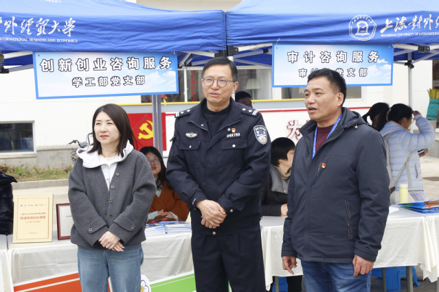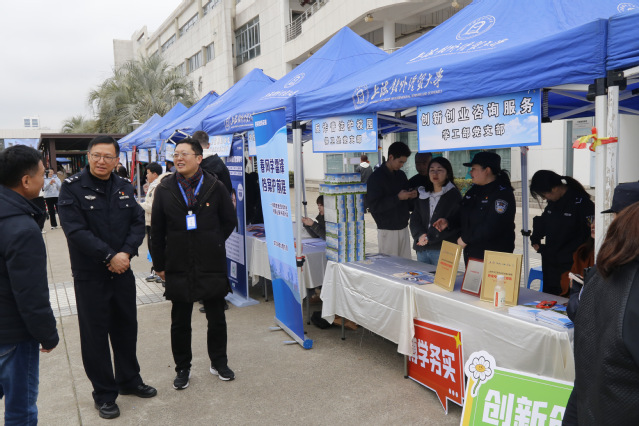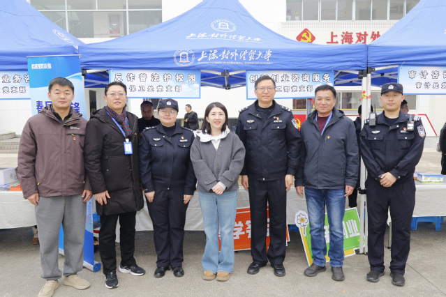 活动前期,三方充分整合资源、精准对接需求,针对高校师生易遭遇的电信网络诈骗、日常法律纠纷等痛点难点,精心设计“集中宣讲 + 互动咨询 + 案例解析” 的活动模式。活动当天,由保卫处党支部党员、松江大学城派出所民警、广富林街道司法所普法骨干组成的“红色志愿服务队”,在学校党建服务中心前设立主宣传区,通过悬挂横幅、摆放宣传展板、发放普法小礼品等形式营造浓厚氛围。