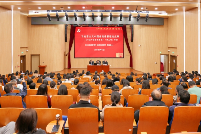 3月12日下午,机关党委在图书馆思源报告厅举办全体机关教职工政治理论学习会。会议特邀中共上海市委党校科学社会主义教研部袁新华副教授、周泉博士作《马克思主义中国化的最新理论成果——〈习近平谈治国理政〉第五卷导读》专题辅导报告。机关党委全体教职工参加学习,会议由机关党委书记范登峰主持。