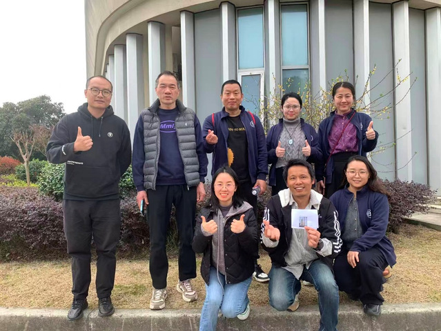 第五站来到了湖滨楼西侧桃花树下,河畔桃花缀满枝头、随风轻舞,粉白花瓣与潺潺河水相映成趣,团队成员们驻足合影,定格春日温柔与同事默契。